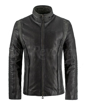 Black Cafe Racer Motorcycle Jacket $199.90